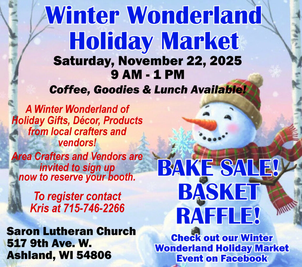 Area crafters and vendors are invited to sign up now to reserve a booth. To register, contact Kris at 715-746-2266.