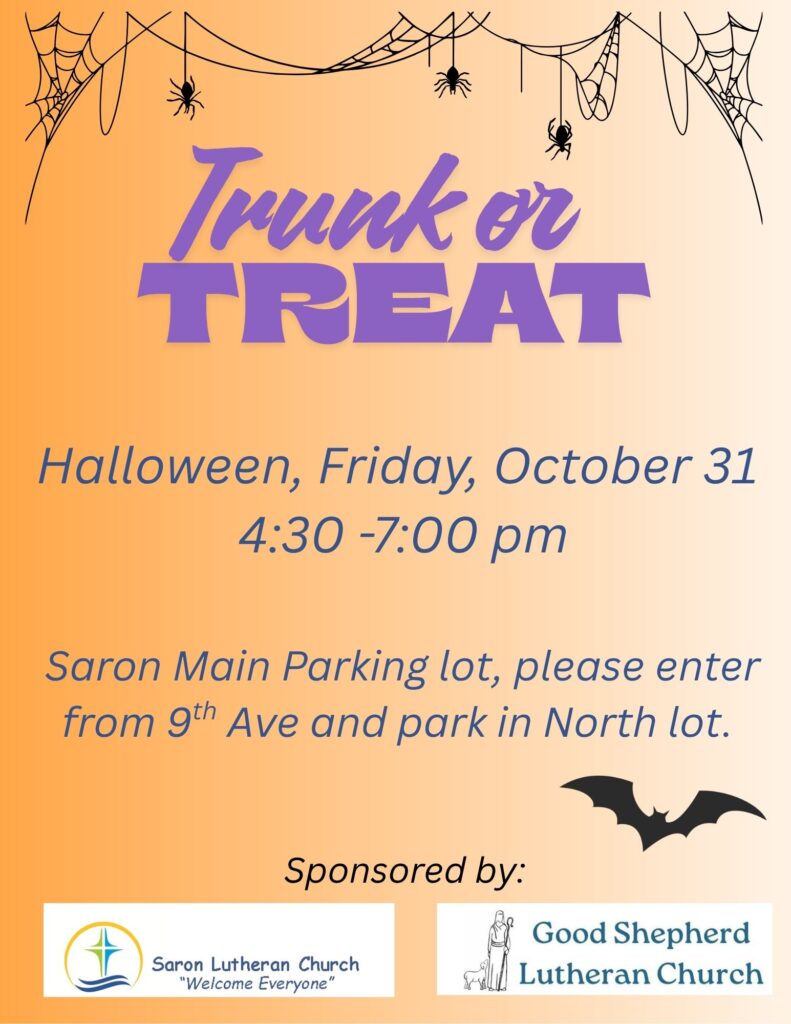 Join Saron and Good Shepherd congregations for a community Trunk or Treat.